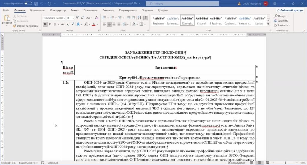 Предметна спеціальність: А4.08 Середня освіта (Фізика та астрономія)